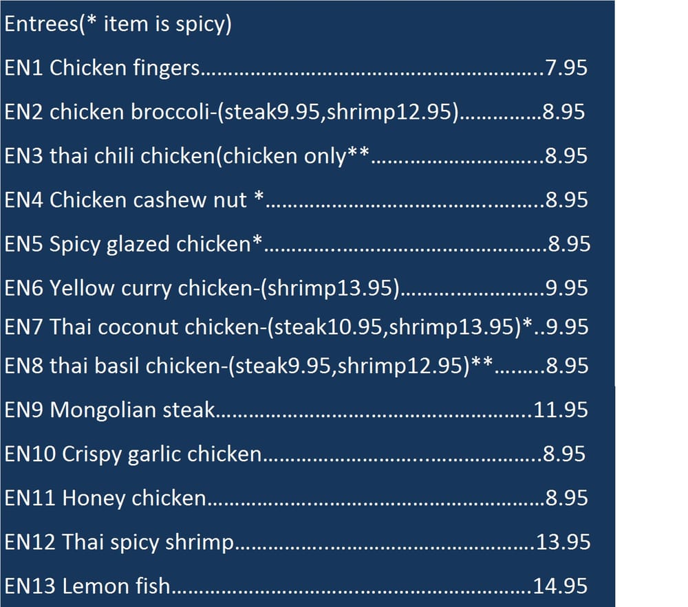 Top Thai Menu (Update 2025)